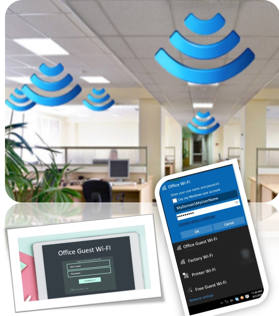 Install, Setup, Configure and manage corporate-wide or office-wide Wi-Fi solutions with guest internet access